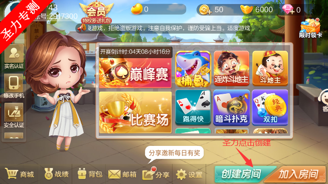 1从圣力下载游戏进入首页创建房间