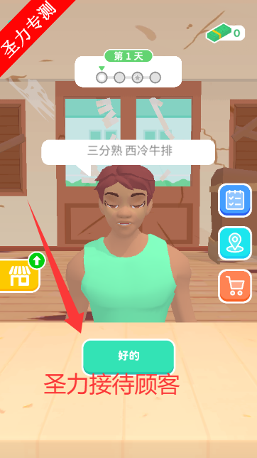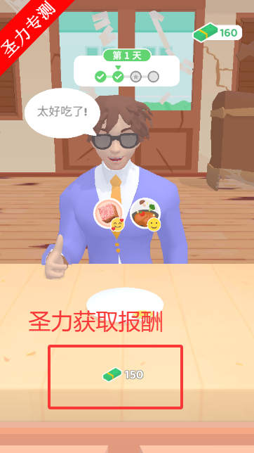 2、将牛排端给顾客,获得好评之后可以获取报酬