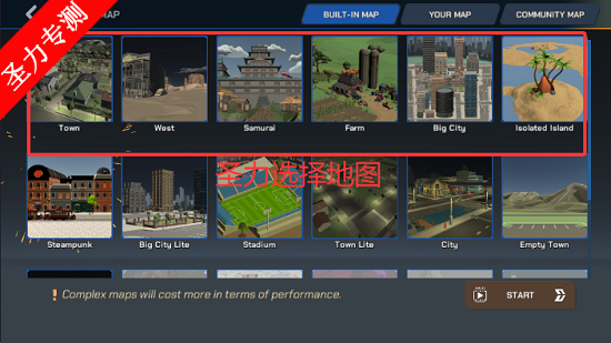 模式与场景选择:进入游戏后,首先选择游玩模式(如FPS漫步模式或创造模式),并在地图库中挑选城市、荒漠等场景。随后可深度自定义环境参数,包括调节月亮颜色、昼夜时间、操作灵敏度及震动反馈,并保存预设。