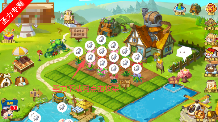 4、成功登录后便可进入农场页面,点击图标即可收菜。