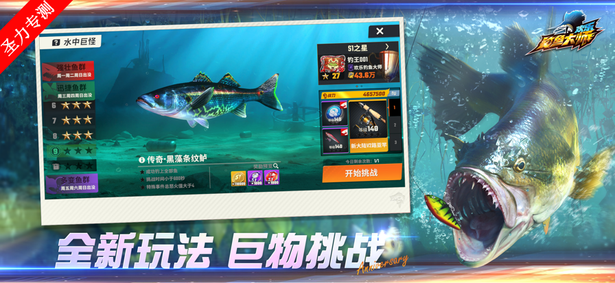 巨人的感觉:征服全球巨人和稀有鱼类在遇到巨人时需要耐心和运气,而征服巨人更需要力量。