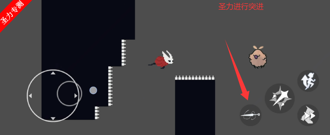 基础跳跃机制:玩家通过方向键控制角色移动,结合跳跃键完成单段/二段跳,部分区域需利用冲刺技能(需提前解锁)快速通过狭窄平台或躲避即死陷阱(如尖刺、岩浆)。