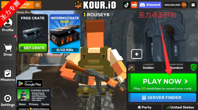 Kour.io 是一款快节奏的多人在线射击游戏,采用第一人称视角,提供团队竞技、个人赛、爆破等多种模式,玩家可选择不同角色和武器,在特色地图中展开激烈对战,体验排位赛和开箱奖励等丰富玩法。