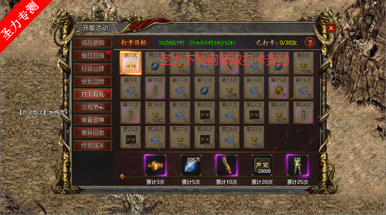 登录奖励:连续登录7天可获得海量充值卡、寻宝密钥等丰厚奖励。