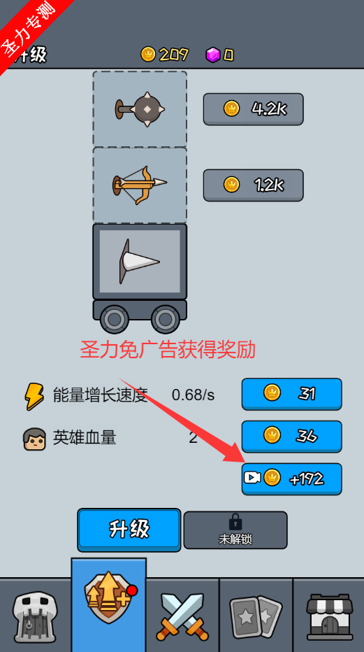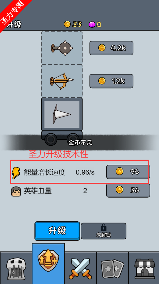 1、使用金币升级塔楼的属性