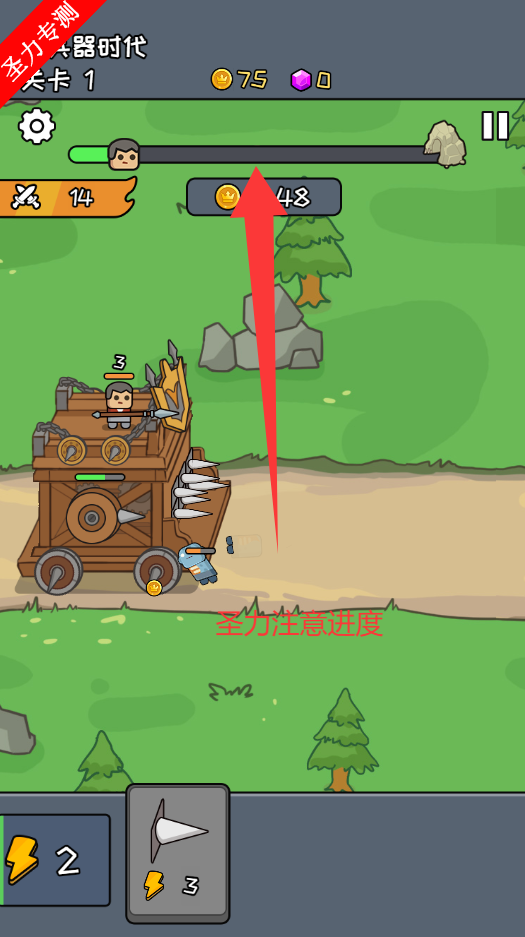 2、注意关卡上方的进度条,到达右侧即可通关
