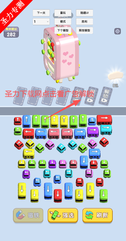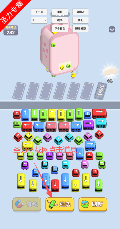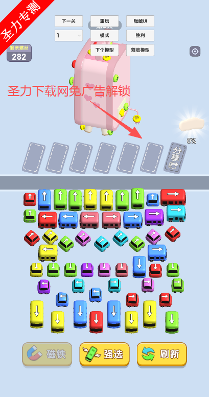 消螺丝是一款休闲类的消除闯关游戏,游戏中有各种不同颜色的汽车,点击汽车便可收集相同颜色的螺丝,直到收集完全部螺丝才可进入下一关,采用3D建模,玩家可旋转视角观察螺丝位置,增强空间感与沉浸感。