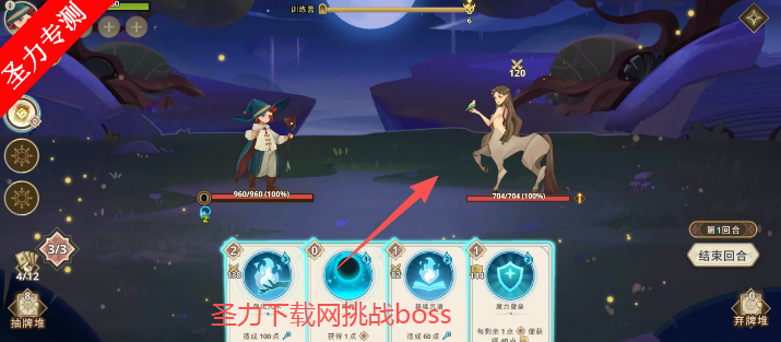 3、根据教程滑动下方的卡片到对战区域便可进行进攻。