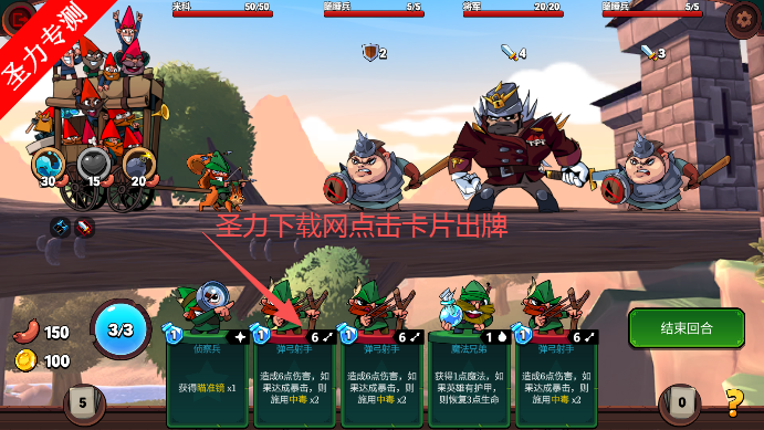 4、之后进入到游戏页面,通过点击下方卡片来进行出牌。