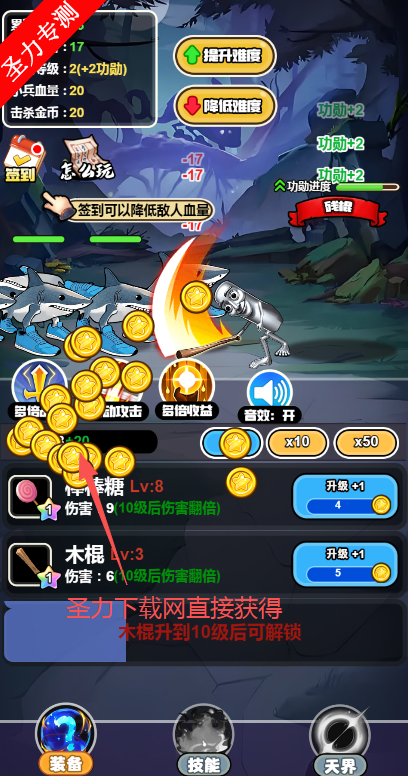 动态收益系统:击败敌人掉落海量金币,手速越快,金币如暴雨般倾泻,屏幕闪烁的数字让人肾上腺素飙升!