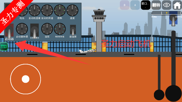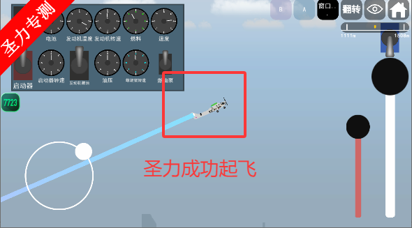 3、让飞机滑行一段路程后使用左下角控制起飞