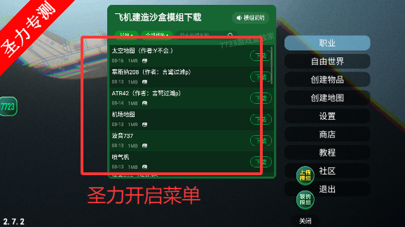 1、游戏中开启了7723模组菜单