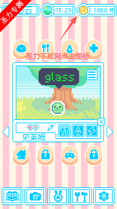 像素美学与治愈风格:采用复古像素画风,结合轻快背景音乐与史莱姆互动音效,营造温馨休闲氛围。宠物动作设计萌趣,如摇晃、跳跃等动态反馈。