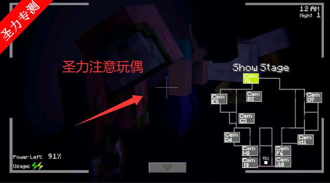 监控与防御策略:通过游戏内监控面板切换视角,观察不同区域的敌人动向。利用门、灯等设施阻挡敌人接近,例如听到喘息声时及时关门,避免被玩具熊突袭。
