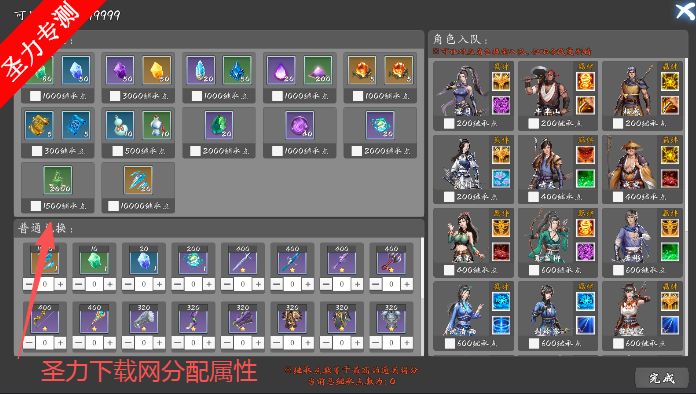 4、选择完毕后便可分配属性,选择自己的阵容角色进行购买。