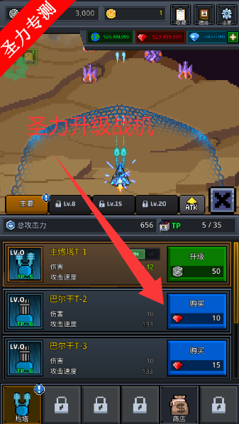 2、使用银币去升级战机的炮台
