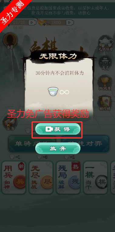 3、在一棋当千模式中,玩家需要利用一个棋子不断吃掉出现的各种敌方棋子
