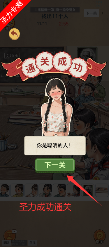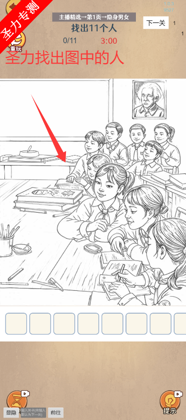 2、根据最上方的关卡要求,找到图中的11个人