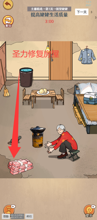 3、拖动地上的钱改善姥姥的生活质量