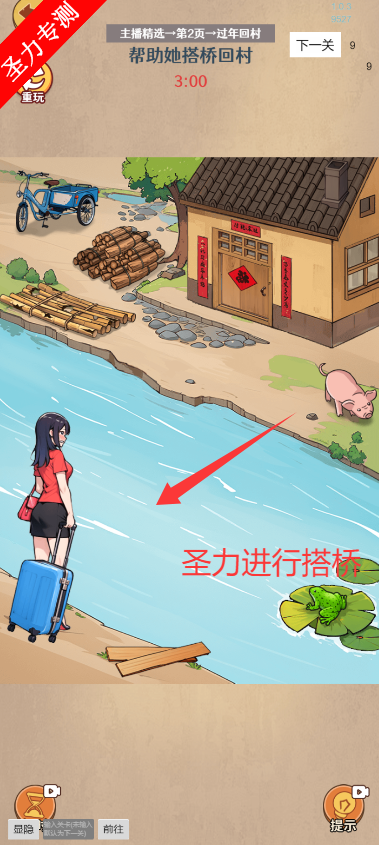 2、拖动场景中的木板来搭桥