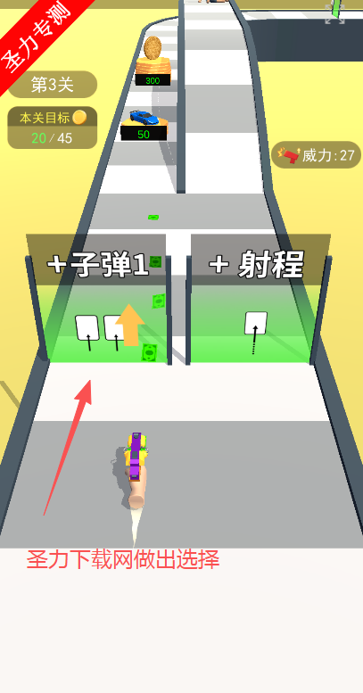 滑动控制:手指左右滑动屏幕,角色会沿道路横向移动,钞票枪自动向前发射。
