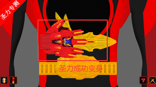 2、在右下角的武器菜单中切换武器即可变身为不同的超级战队战士