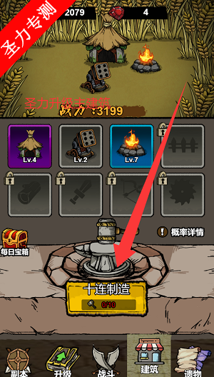 1、在游戏玩可以在建筑处使用制造,来提高炮台和基地的等级属性