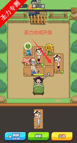 2、放置防守武器在方格中,点击下方的刷新可以获取新的武器
