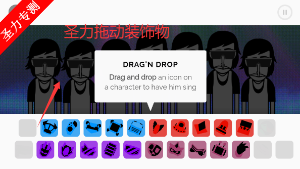 3、拖动装饰物到空白人物身上即可自动发出音乐