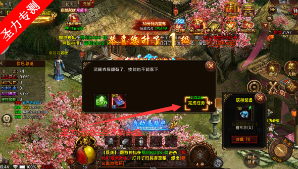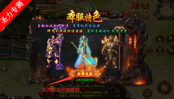 白日门玩法:包含圣物采集、封赏击杀、猎魔BOSS、押镖等子玩法,奖励勇士之魂、神圣石等材料。