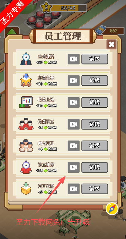 员工招募:雇佣厨师、服务员、清洁工等角色,提升服务效率,解锁特殊技能。