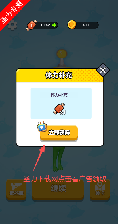 2、再点击观看广告领取体力。