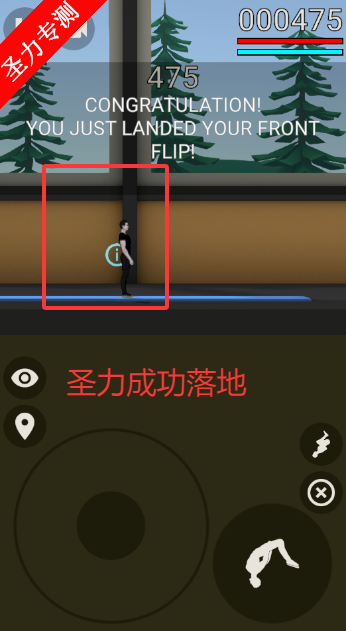 核心操作:点击屏幕控制角色起跳,滑动调整翻转角度与方向,完成连续后空翻积累分数。