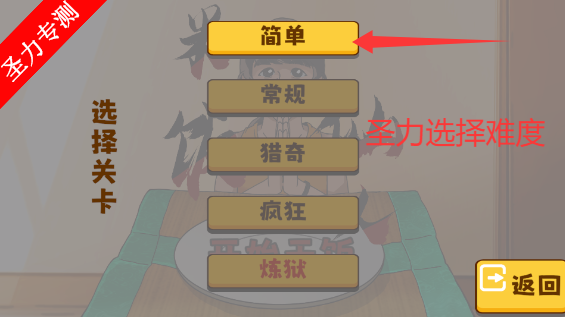 2、选择一个游戏难度开始,刚开始必须从简单开始