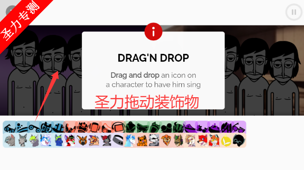 3、拖动装饰物到空白人物身上,即可发出特定的节奏