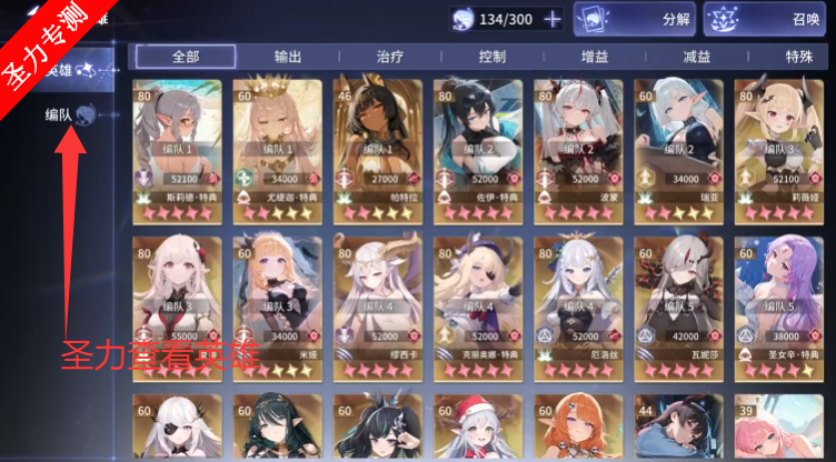 1、在英雄界面中查看已经拥有的英雄,点击编队