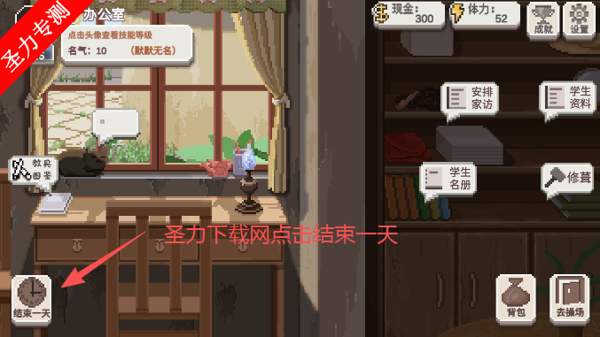 个性化学生管理:每位学生拥有随机生成的性格与天赋,需针对性辅导。学生心情值影响学习效率,需通过谈话、课外活动等方式调节。