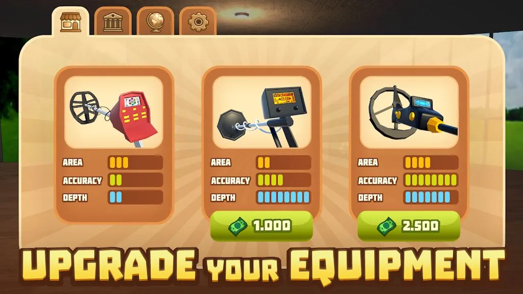 3. 升级装备探索:能用收入购买更高级探测器,探测更稀有的物品并快速追踪,在开放世界自由探索,感受真实考古氛围。