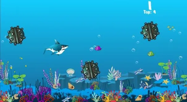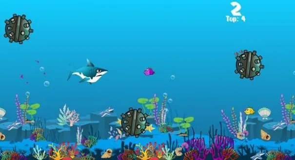 4、尽可能多地捕捞鱼,避免避开地雷!点击屏幕以游泳。赶上鱿鱼,进入超级鲨鱼模式!