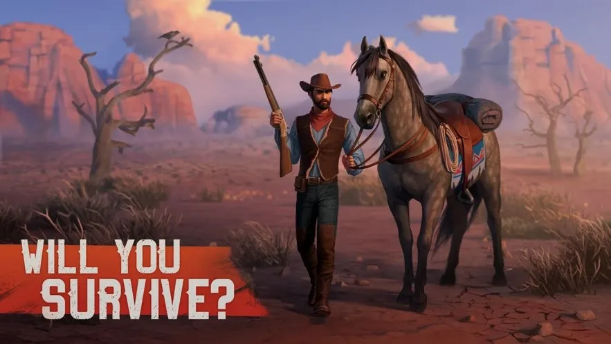 西部土地生存官方正版是一款以美国西部历史为题材的MMORPG手游。玩家将扮演牛仔在荒野求生,集生存、冒险、战斗、建造等元素。可掠夺资源、制作装备、探索未知,还能与其他玩家交易,玩法丰富,画面出色,操作简单易上手。
