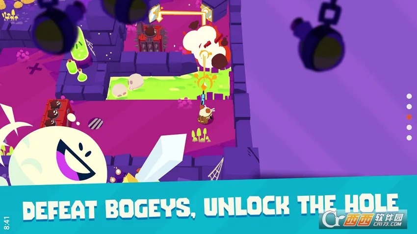 这款游戏独具特色。它将高尔夫与地牢冒险巧妙融合,**不再是枯燥的传统高尔夫**,而是充满新奇与挑战。玩家要操控卡尔追逐偷狗妖怪,在超过100个难度递增的关卡中冒险。可使用多样武器,穿越如古朴小镇、真菌森林等独特场景。不仅要让卡尔进洞,还得应对妖怪巡逻。能从商店买武器、设陷阱。完成关卡有星星和皇冠奖励,用于提升等级、解锁新挑战与服装。拯救狗狗的任务很史诗,各种精彩元素让人沉浸其中,是一款值得尝试的创新冒险游戏。