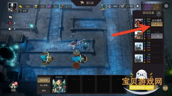 3、能在酒馆挑选英雄培养强化,带队挑战更高难度关卡,不断变强。