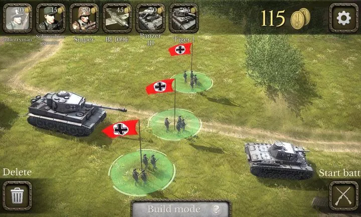 2、丰富模式选择:拥有战役模式和沙盒模式。可体验盟军或轴心国的两场沉浸式单人战役,还能在沙盒模式下自由创建战斗,完全掌控地图编辑、地形塑造和部队部署。
