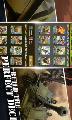 可收集、升级强大部队和战术卡,构建独特套牌,运用多样步兵与战术打造终极军事甲板。