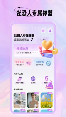 截图模拟神器是为社恐人群打造的社交工具,有模拟消息提示、电话来电、关机等功能,还能模拟多种身份消息,附带实用小工具和精美朋友圈素材,新版优化了用户体验,助社恐灵活应对社交。