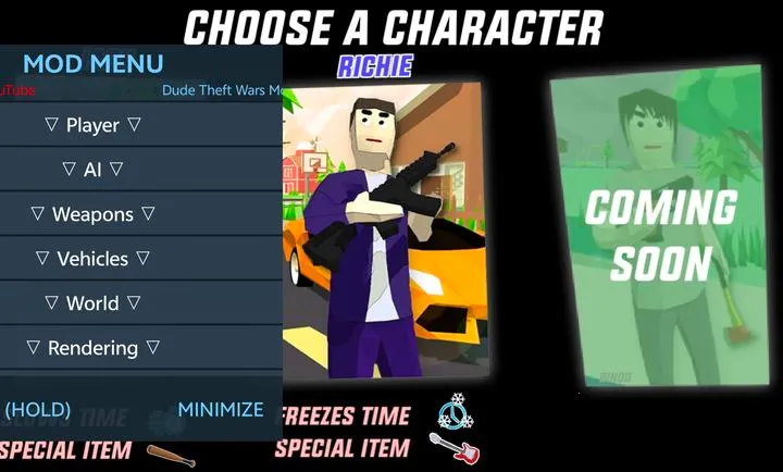 沙雕模拟器DudeTheftWars是开放世界沙盒模拟趣味手游,画面呈动漫风格,视觉舒适。自由度高,能自由收集武器资源、开车,地图设计别出心裁,还有精彩副本玩法,可积攒资源打造个性化领地。