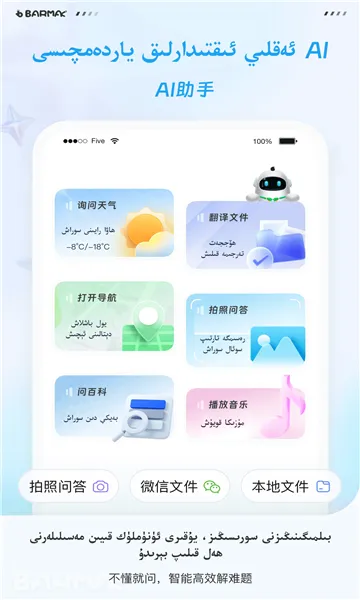 BARMAK维语输入法是支持老维语、拉丁维语、汉语、英语的多语言输入法,由成都西谷新域科技有限公司开发。提供强大词库与联想,有便捷互译、语音输入等功能,界面简洁无广告,还有海量皮肤和表情包。