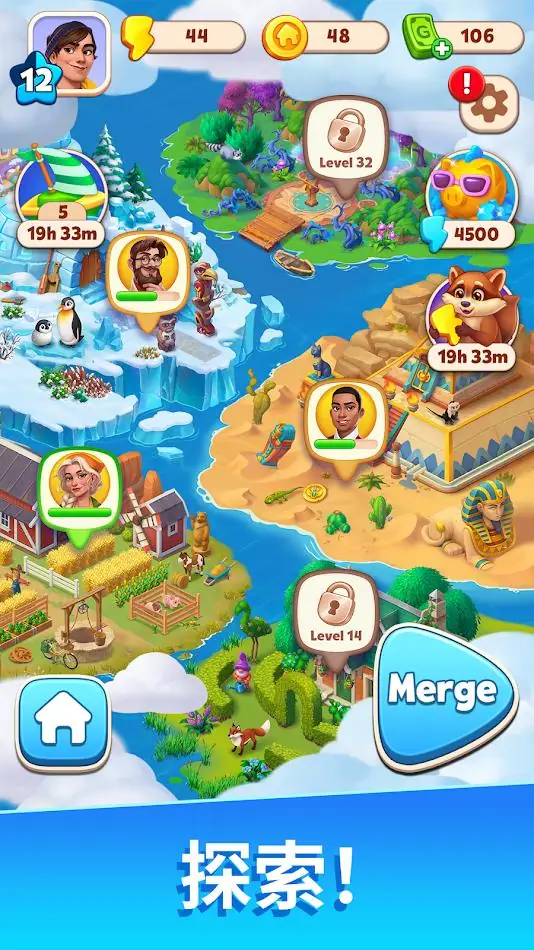 3、游戏特色众多,可合并物品助角色冒险,有色彩鲜明角色且各有故事,地点有很多小动物,能探索不同标志性地点,还有大量小游戏,每月更新带来新机制或限时活动。