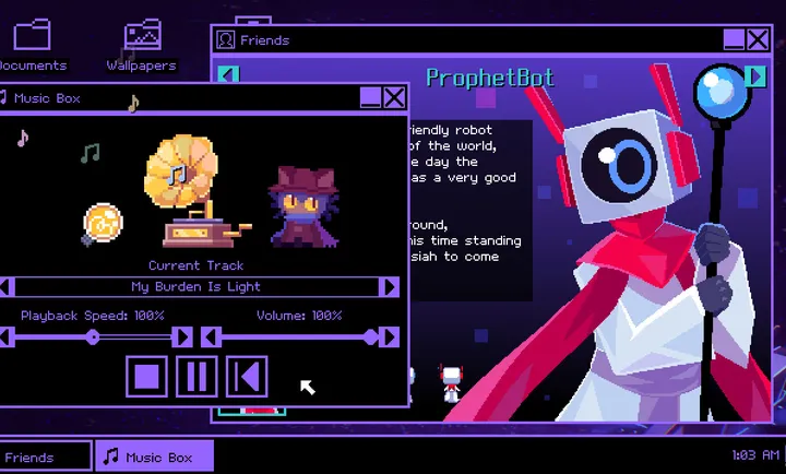 这是一款独特且感人的解谜冒险游戏,模糊了游戏与玩家界限。玩家扮演尼科,身处陌生濒毁世界,肩负为世界带来光明、拯救居民的使命。游戏元叙事引人入胜,玩家在其中扮演重要角色引导尼科克服挑战。通过解谜与世界互动揭开秘密,还要平衡游戏世界与现实。其迷人艺术风格、感人叙事及创新玩法令人难忘,能让玩家重新审视故事本质与自身角色,带来与众不同的游戏体验,绝对值得一玩。