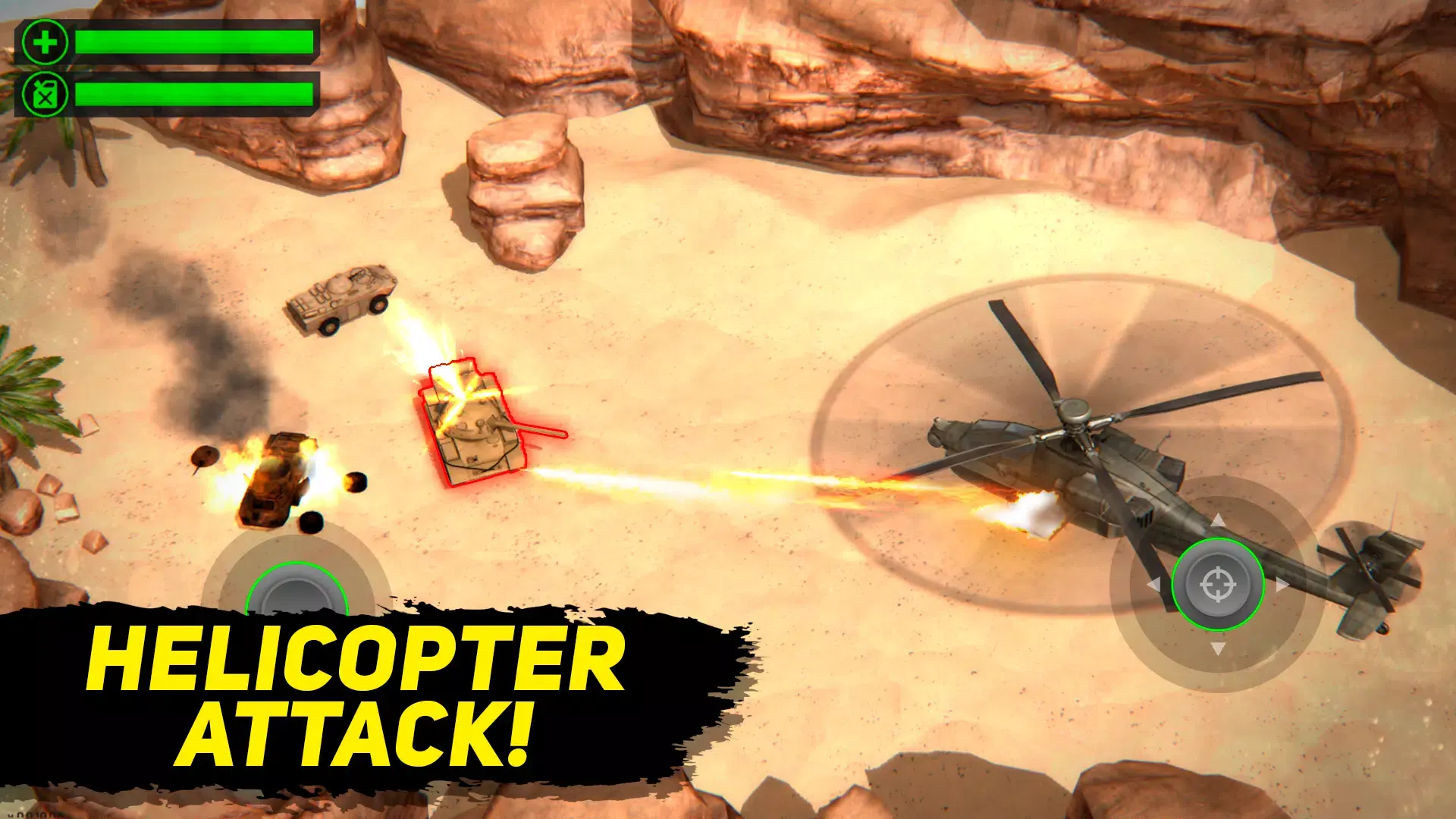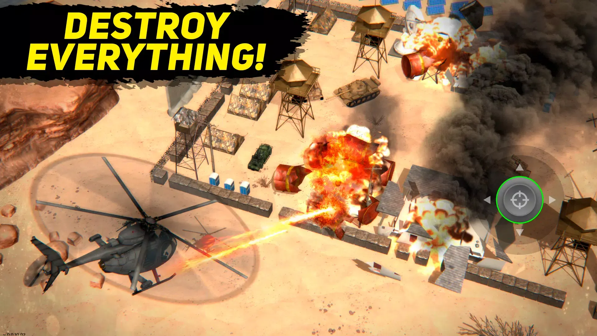《沙漠直升机突袭3D》是一款动态射击游戏,可操控战斗直升机在逼真战争氛围中作战。离线即可玩,完成任务赚取金币解锁新直升机并配武器。有多种战斗风格,视角流畅,破坏系统逼真,还有多样任务及升级定制系统。